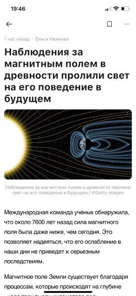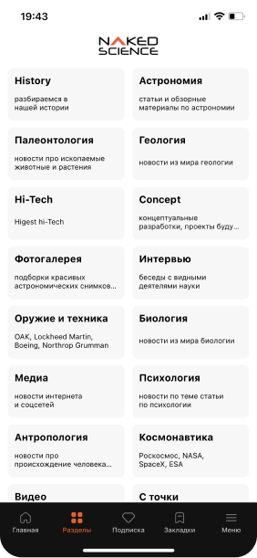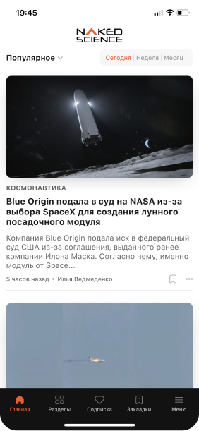 Статьи, изменения в RSS и новые рубрики моментально появляются в приложении.